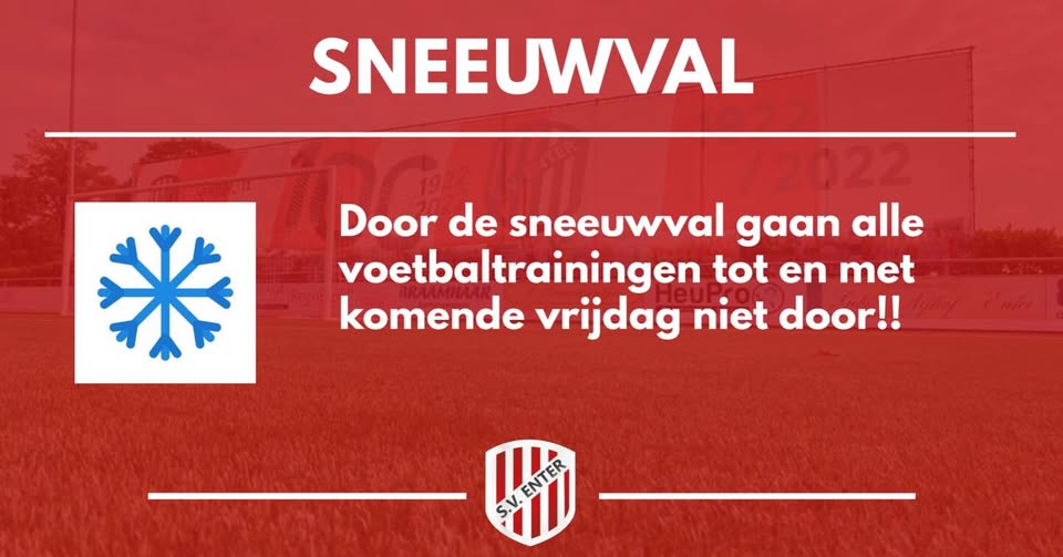 Vanwege de sneeuw en vorst zijn de velden tot nader bericht gesloten.